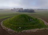 3.5 m high round barrow / burial mound on the island of Lolland. Several kerbstones can be seen on the north side.