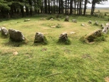 Often referred to as a stone circle, the circle of twenty-two surviving stones are actually the kerb of a round cairn, now destroyed. In the centre lies a badly damaged burial cist.