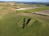 Chambered Long Barrow very prominently positioned on its hilltop to the north of Alton Barnes in Wiltshire. Composed of a long mound with visible stones in a hollow to the south-east which may be the remains of a burial chamber, Adam's Grave is believed to have been constructed using post and panel techniques.
