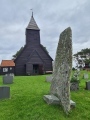 Vilnes church on Atløyna island, western Norway has 3 huge and beautiful standing stones inside the churchyard. They all have the shape of large massive standing slabs and are well known locally. A local legend also includes the standing stones and some trolls!
