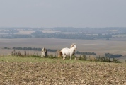 More photos of this wonderfully peaceful spot on our page. Upright sarsen stone near the White Horse Way just below the Ridgeway on Hackpen Hill. Possibly set upright relatively recently by the farmer - see also the nearby Fiddler's Hill upright sarsen.