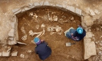 Chambered tomb excavations return for another season, there's a video talk on last year's discoveries and more on our page. Recently discovered in the parish of Holm, Orkney the ruins of a 5,000-year-old tomb that 'reflects the pinnacle of Neolithic engineering'. Fourteen articulated skeletons of men, women and children – two positioned as if they were embracing – have been found inside one of six cells or side rooms. The tomb measures more than 15m in diameter and contains a stone structure accessed through a long passage of around seven metres.