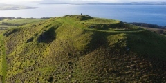 The Knock is up for sale, with 357 acres of land, 200000 trees, some carbon credit stuff and a hillfort. Knock Hill has a small Iron Age hillfort, situated upon a steep-sided ridge overlooking the Clyde estuary. The summit of the fort is surrounded by a stony, turf-covered rampart, no more than 90cm high internally. Although no trace of vitrification is currently visible, there was enough vitrified material found in the ruins to indicate that it had been a timber-laced wall.