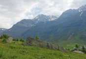 One of two stones at Ai Grass/Crestone pasture above Madesimo, Lombardia. Already recorded in a 1980s census of carved stones in Valchiavenna, it presents several cup marks along its South-Eastern edge.
