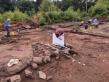 From this year’s dig, Lisa one of the excavators drawing a patch of ancient pavement. This hillfort sits on top of a sandstone escarpment overlooking the Shropshire Plain. It is a D shaped fort with double-ditched inner and outer ramparts.