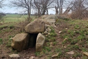 Jættestue or large dolmen in Midtjylland . A long barrow with passage grave. 1.25 x 1.75 x 15 meters. Restored and excavated in 1958 and 2003. At the entrance a large sacrificial layer was found. The chamber meaasures 2.6 x 2m, with 6 orthostats and 1 capstone.