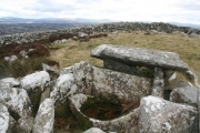 Dorset's finest megalithic chambered long barrow lies in a field just off the southwestern side of the main footpath to Kingston Russell Stone Circle. It extends for 20 metres behind the main stones, but has been shortened by ploughing.