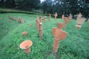 Three great keyhole-shaped tumuli and other small ones are preserved in Ōmuro Kōen park (大室公園). Two of the huge keyhole-shaped tumuli have reproduction haniwas added. A small keyhole-shaped tumulus, Shō-Futagozuka Kofun almost destroyed is reconstructed with many tube, human-shaped, animal-shaped and armor-shaped haniwa.