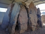 Burial Chamber or Dolmen in Andalucía. The current dolmen is about 4000-4200 years old. The approximate dimensions of the orthostats are about 3m high, 1m long and just 20cm wide. The mound was of large proportions, it measured 31 meters in maximum axis by 26.5 meters in width, so ellipsoidal in shape. Its original height is unknown. During excavation, it was possible to verify the existence of a kind of ring of medium-sized river pebbles, which completely surrounded it.