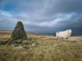 Shown on the OS as Maen Bach (meaning 'small stone'), this delightfully shaped stone is high on the Mynydd Mallaen in Carmarthenshire (Sir Caerfyrddin). It stands between the Mynydd Mallaen Standing Stone and the cemetery cairns known as Crugiau Merched (Ladies' Cairns).