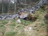 Alan has found this unusual site with what looks lie a capstone resting on smaller boulders with a drystone boundary wall running tight up to it - what do you make of it?. Situated to the south of the B4410 that links Maentwrog with Rhyd this stone feature lies close to an ancient boundary wall. Gwynedd Archaeological Trust (GAT) has identified a nearby prehistoric field system and small enclosure but this feature has not attracted any apparent archaeological interest specifically. However, it's an interesting looking feature that may or may not have served a previous historic purpose.
