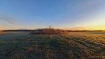 A small, relatively well-preserved burial mound southwest of the village of Lebehn in Mecklenburg-Western Pomerania. The remains of a hunting high seat still stand there and unfortunately the farmer has ploughed the field up to the edge of the burial mound.