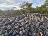 The Lunderamsa site will be the number 10000th photo I (Kenneth) upload to Megalithic Portal! A beautiful example of a large bronze age burial cairn. Not a round cairn but a long cairn which are rare. The cairn is located on top of a large rocky hill with some pine forest and rock outcrops. A footpath leads from a local road up on the hill and there are also some information posters. From the top there is a beautiful view over the ocean and the cairn would have been easily visible from the sea.