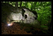 The Heidentempel ("pagan temple") is a rock in Tecklenburg (North Rhine-Westphalia/Germany). It has been speculated that this site was used as a pagan sanctuary. Several runes of unknown age can be seen in the rock. Two niches have been cut into the rock wall. According to local legends, the sacrificial knife lay in the smaller niche, while the bowl with which the priests collected the blood from the sacrificed animal lay in the bigger one.