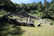 Like Eunhyeonni-ni cairn, it is not clear if this cairn is a chambered cairn or a Buddhist pyramid. It is called in Korea generally, So-called mausoleum of King Guheong. King Guhyeong was the last king of Geumgwan Gaya which was a member of the Gaya confederacy i.e. small kingdoms on the southern shore of the Korean peninsula,annexed by United Silla Kingdom.