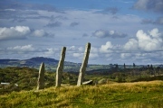 Three slender pillars in Co. Cork known as The Three Fingers rise dramatically against the sky. Up to 4.2m tall, evenly spaced and set into joints in the exposed rock surface. A fourth stone lies prostrate nearby, out of line. A fifth stone was removed in the 19th century and now stands in the Somerville Estate at Castletownshend.