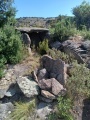 This dolmen, like the others in this Cataluñian valley was very difficult to find, even with an advanced GPS. All paths that were once in the area are overgrown with sharp, thorny bushes and are easily lost amongst boulders, trees, drops and slopes. It was a very difficult and sunny descent. Still, the dolmens are pleasing, and bold, red on white signs can be seen on arrival. This is useful as the bushes seem rampant. There are pairs of stacked stones left by someone who occasionally visits some of these sites. Expect a difficult scrabble if you visit, bring water and tell someone where you are heading. it is real ankle breaking terrain.