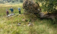 Situated within land managed by Cyfoeth Naturiol Cymru (Natural Resources Wales) the site was recently visited by members of the Ffestiniog Archaeological Society. The field management team had noted a stone construct, resembling an arc of a hut circle that became visible following the wind blown felling of a large oak tree and the archaeology group were invited to have a look. The archaeology group examined the stone structure and also conducted a basic walking survey of the entire site which resulted in the identification of further features that may have a prehistoric origin. However, for the purpose of this post I'll focus on the possible cairn...