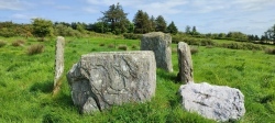 With two good portal stones, five others visible, and the axial stone is embedded in a fence. The farmer on whose land in Co. Cork the circle stands cleared the field and dumped the stones in the circle, which local opinion considered to have been the cause of the mysterious deaths of his cattle.