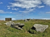 A passage tomb comprising a cairn kerb forming an almost complete oval 19.5m at its widest point. The chamber is 1.8m long x 1.15m wide