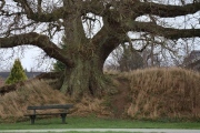 A fine round barrow, 2m tall by 15m diameter. With a very old oak tree on the barrow. One of the surviving burial mounds along the road named Ølbyvej in Køge, Sjælland. Here's an interactive map of the others or see the nearby sites list on this page.