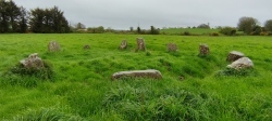 The northern of two stone circles in the townland of Knocks, Co Cork. Ten of eleven stones survive, including axial stone and two radially-set entrance stones.