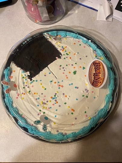 And I saw the sticker on the plastic lid that said Brownie Company, but the bottom sticker on the price tag said cookie cake. Nowhere did it say chocolate cake.