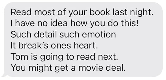 Read most of your book last night. I have no idea how you do this! Such detail such emotion It break’s ones heart.