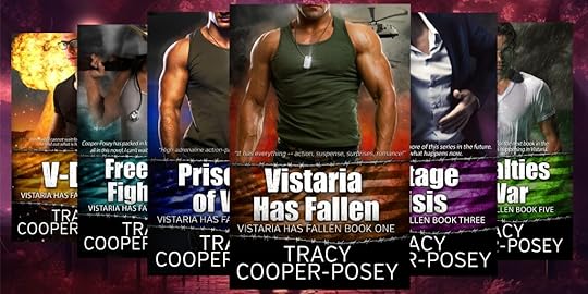 The next series to return to full retail is the Vistaria Has Fallen series — military romance with a twist — the military heroes are Latino, based in a fictitious island nation off the coast of Mexico. The heroes and heroines face a bloody revolution that takes the entire series to play out.