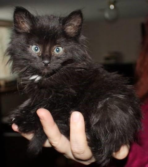 Strider is a black cat and when we got him, he fit onto the palm of my hand: