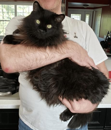 Pippin is my writing buddy, but today I’m acknowledging the crazy black kitty in our household.