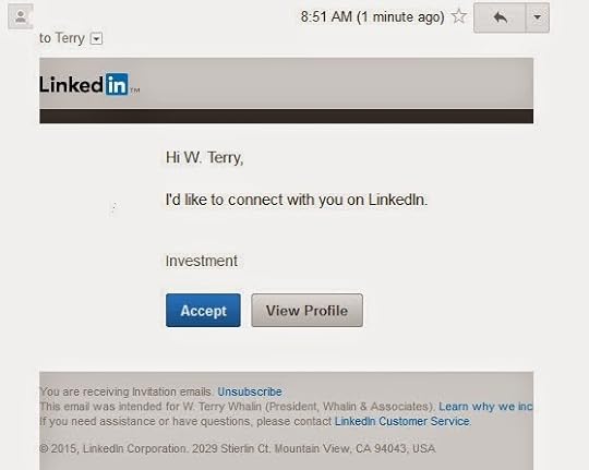 Here's an example of a profile that I did not accept their invitation--in fact I marked it as spam so they will not be able to invite me again:
