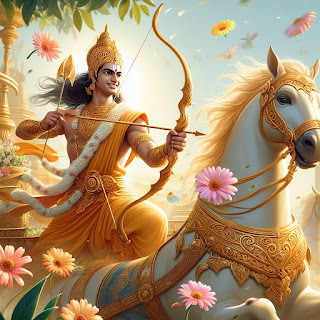 In Karna Parva, Arjuna again sensed a fresh breezewafting on the battlefield littered with mutilated bodies and celestial musicplaying around him. It indicated that he would kill Karna that day. Karna alsosaw omens but ill ones, predicting his end.