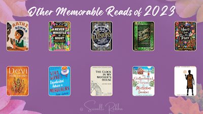 Never Whistle at Night (edited) by Shane Hawk and Theodore C. Van Alst Jr.Genre: Multi-Author Anthology Publication: 2023One-Liner: Strong themes, diverse stories Full Review: https://sri-lovenature.blogspot.com/2... The Crossover by Kwame AlexanderGenre: Middle Grade, Novel in Verse Publication: 2014One-Liner: A heartwarming read Full Review: https://www.goodreads.com/review/show... The Gingerbread House in Mistletoe Gardens by Jaimie AdmansGenre: Contemporary Women’s Fiction, Romance Publication: 2023One-Liner: A sweet, heartwarming, and Christmasy bookFull Review: https://sri-lovenature.blogspot.com/2... The Clock in My Mother's House by Annalisa CrawfordGenre: Unthemed Anthology Publication: 2023One-Liner: Wonderful and poignant Full Review: https://sri-lovenature.blogspot.com/2... Devi for Millennials by Bibek Debroy Genre: Indian Non-fiction, Religious/ Spiritual Publication: 2022One-Liner: The first step to understanding DeviFull Review: https://sri-lovenature.blogspot.com/2...