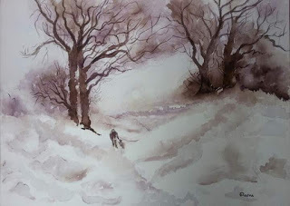 The dog barked, greeting the bare treesThe man smiled, wishing them new leavesThe icy wind blew gentler Waiting for them to walk back home