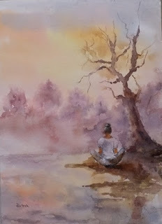 With hair knotted into a top bunAn old shawl draped around The shoulders in relaxed grace The man stayed deep in meditation