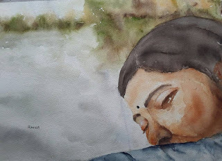 She sat on the riverbankStaring away from the shimmering wavesImmersed in her memoriesThat threatened to slip down The almond eyes, heavy with turmoil.