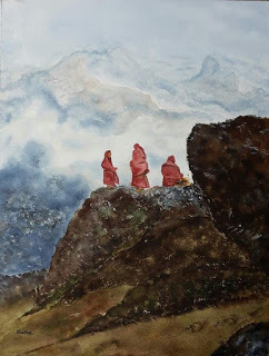 HighUpOver thereFar awayAcross the globeAgainst the snowOn an earthy mountainThree men in redImmersed in a deep discussionBut not a word spoken;Away from needs, wants, & desiresThey found peace by owning nothing.Yet they were the richest amongst allWith Nature’s abundant love protecting them always.