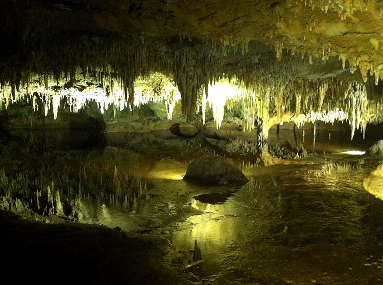 Water reflection of stalactites.