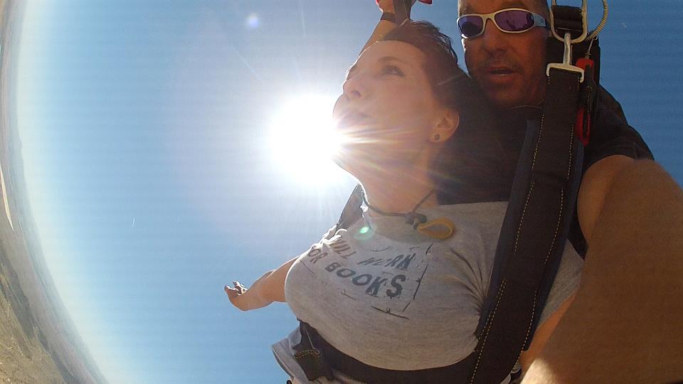 In Slayers: Friends and Traitors (due out in October) I have characters jump out of a plane, and I decided it would be a good idea if I went skydiving so I could write a more authentic scene. I didn’t think it would be too frightening since a large amount of people skydive every year. I figured, hey, people pay a lot of money to skydive so it’s probably even fun.