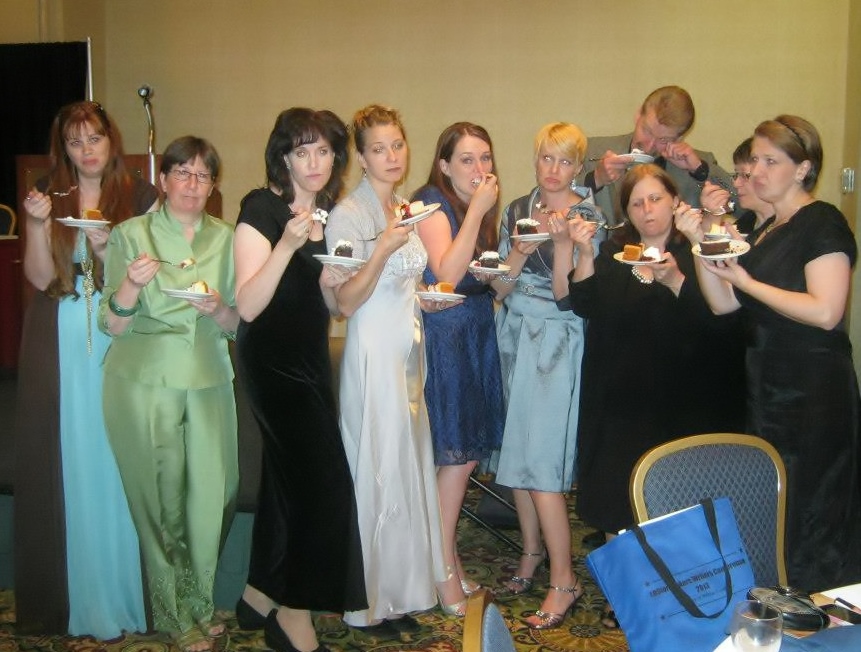 Every year, the funnest part of the Whitneys, (at least for me) is the after dinner drowning-your-sorrow-in-cheesecake because you didn't win pictures that Julie Wright, James Dashner, and I started years ago.