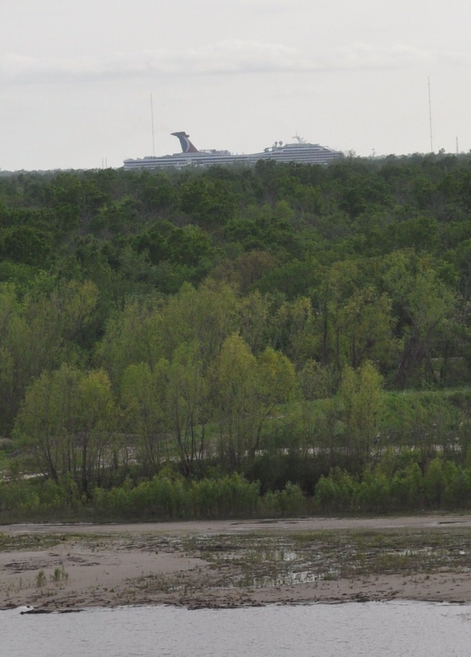 And here you can see a cruise ship taking a wrong turn somewhere on the Mississippi River. By the way, it took us nine hours to get to the sea. This is probably why Huckleberry Fin was such a long book.