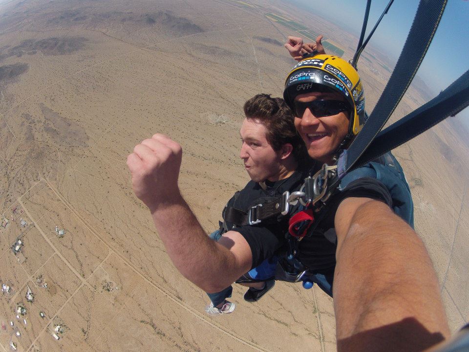 Falling at around 130 miles an hour was like standing in a wind tunnel. All I heard was the wind screaming by. I couldn’t even tell I was falling because nothing around me was moving. Then the parachute came out and I glided through the air at a gentle 15 miles an hour. It did feel like flying then and was really fun—especially when we did spins. Spins are the best.