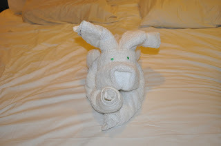 The stewards always left little towel animals on our bed ever night. Oh sure, they look cute and cuddly . . .