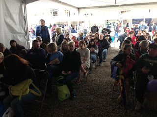 Despite just experiencing a bumpy airplane ride, I have not fallen off the face of the earth. I haven’t blogged this week because I’ve been busy with school visits, conferences and such. I know you’re all wondering how the Tucson Book Festival went. Remember how I told you that my typical audience for a book reading at the teen tent was an average of, oh, a couple wandering people who wanted to rest their feet for awhile? Well, you will think I’m a liar when I show you the picture of the audience I had.