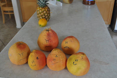 I was trying to make my daughter help me with a good guy-bad guy fight scene for the Erasing Time sequel and needed something to stand in for my people, so I grabbed a marker and some grapefruit that were on the counter.