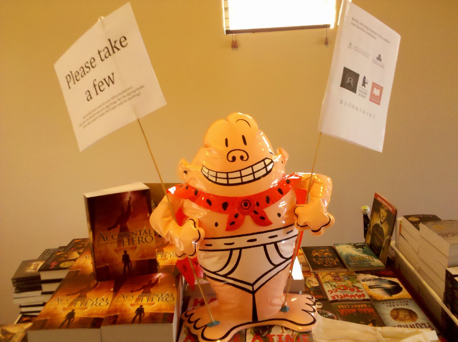 Here's another cool thing about being an author. You can have a blow-up of Captain Underpants sitting on your table and nobody thinks it's strange.