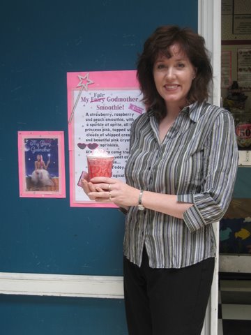 They made a special Fairy Godmother smoothie in my honor. And it was really yummy. It's probably a good thing I don't have access to more of these, or I wouldn't fit into my school-visit-black-pants come next fall.