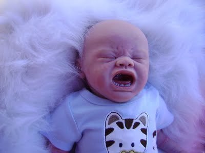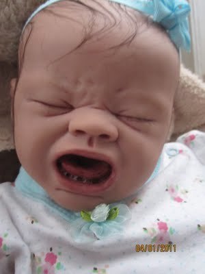 There seems to be a new trend to have baby dolls open-mouthed and crying. This is another place where the words, "No. No. No." come to mind.