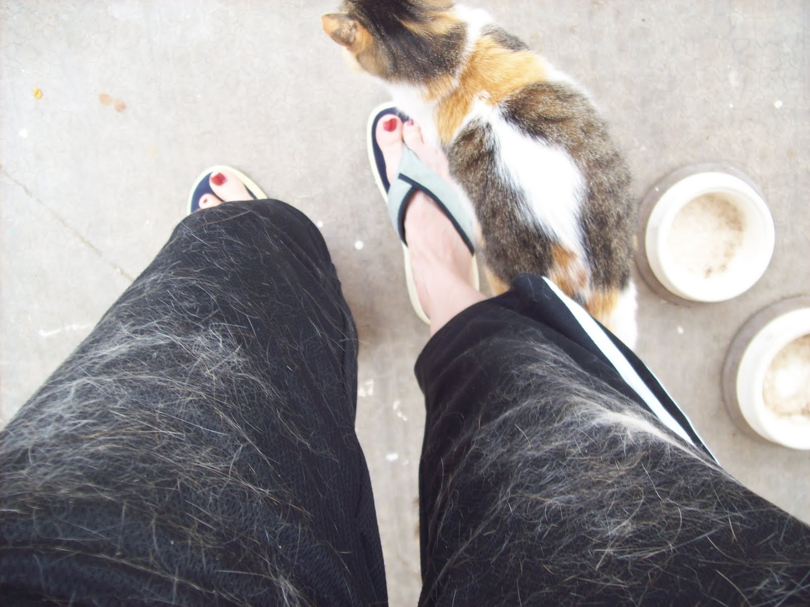 Your cats shed a lot. Yeah, she looks innocent, but she has ulterior motives for wanting to be petted. Honestly, this cat creates fur clouds every summer.